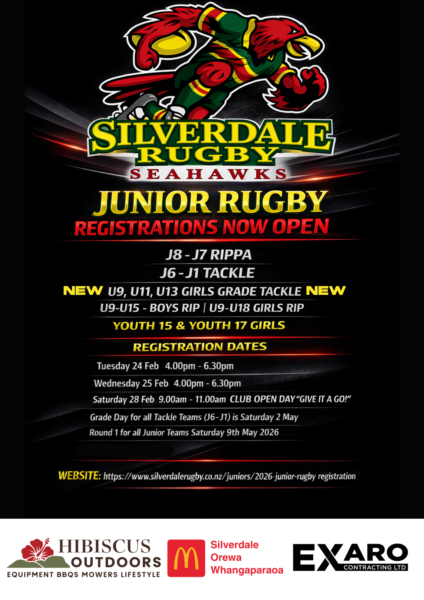 2026 Junior registration & weigh night dates will be held at the Silverdale Rugby Club: